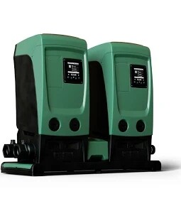 Incorporating two standard Esybox Mini 3 units mounted on a quick release base. This unit has 1.25" BSP connections, two 13 amp plugs. The pumps communicate via bluetooth to allow auto-sequencing.